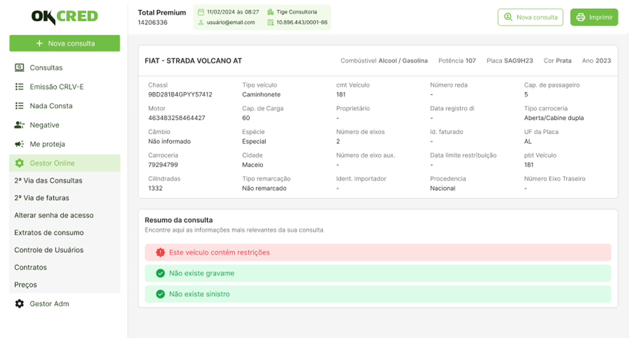 Com poucos cliques, consulte CPF e CNPJ com dados atualizados dos principais birôs de crédito do país. Visualize pendências, score, protestos, ações judiciais e muito mais em uma interface simples, rápida e clara. Elimine suposições e tome decisões mais seguras em suas vendas ou parcerias.